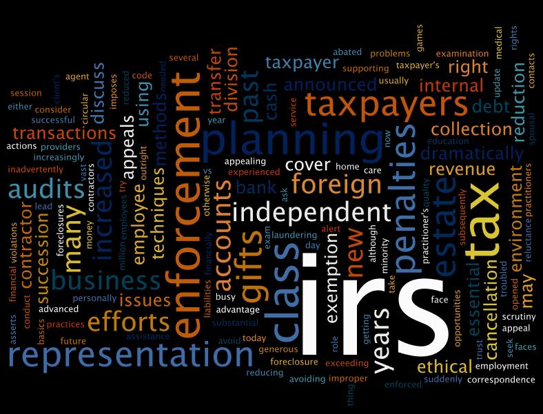 Over the past several years the IRS has dramatically increased its enforcement efforts. This class will discuss the methods the IRS is using in this new enforcement environment.