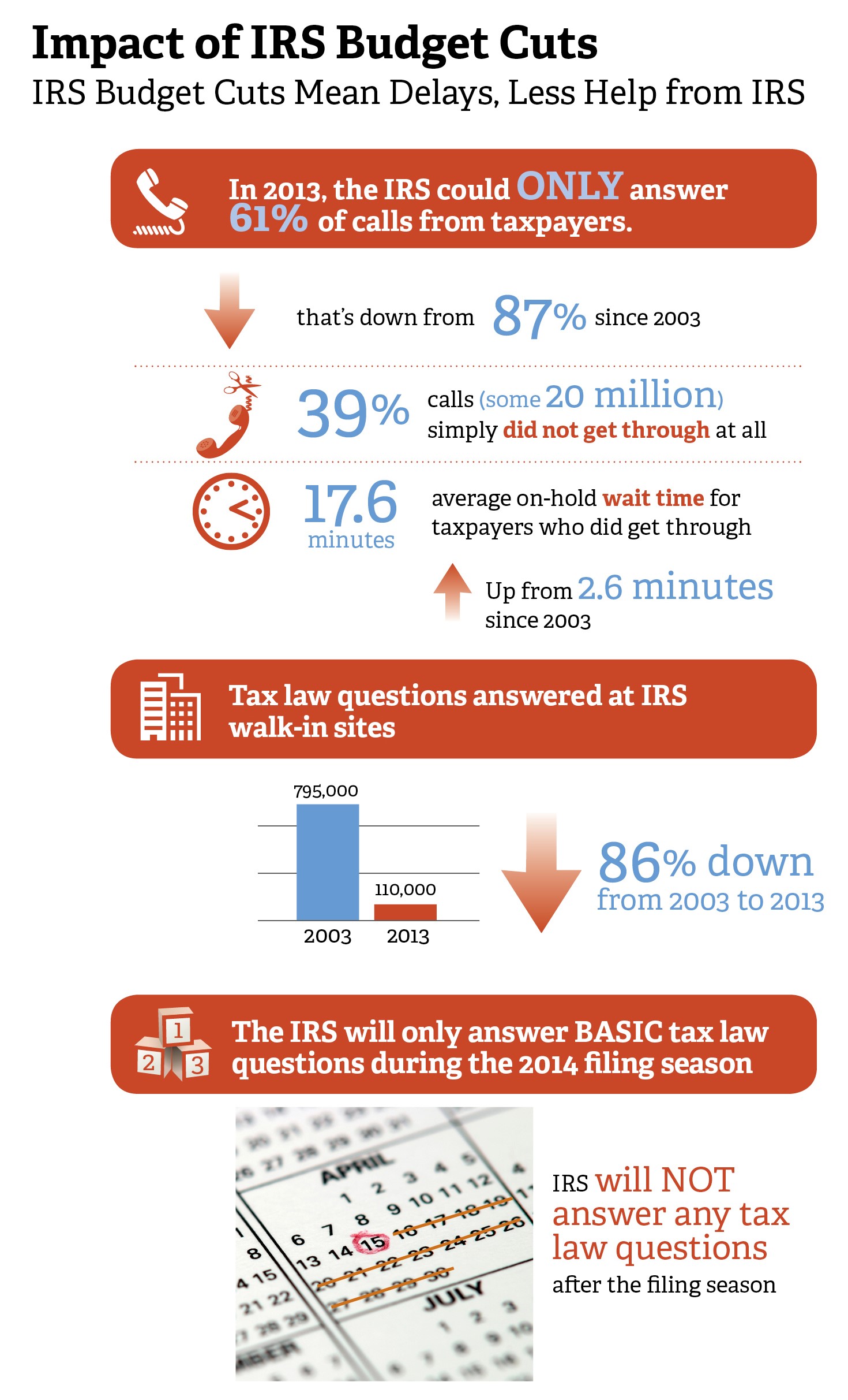 Cutting the Internal Revenue Service (IRS) budget so much that it is exceedingly difficult even to get a person on the phone to help you and possibly delaying tax refunds.