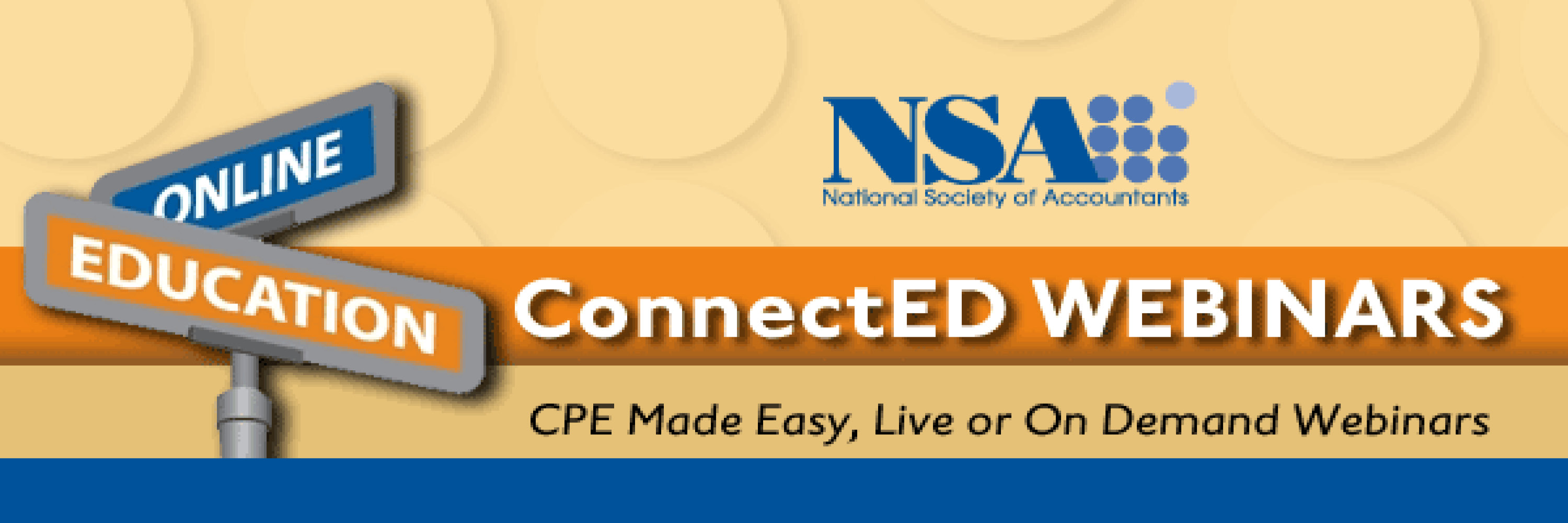 The NSA will be conducting new programs in our series of ConnectED Webinars, which are approved for continuing professional education (CPE) by the Internal Revenue Service (IRS), National Association of State Boards of Accountancy (NASBA), Accreditation Council for Accountancy and Taxation (ACAT) and California Tax Education Council (CTEC).